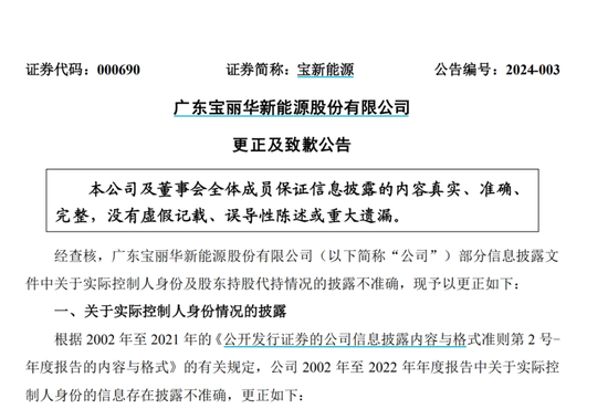 值得注意的是,4月9日,宝新能源发布更正及致歉公告,承认有关实际控制人身份及股东持股代持情况的披露不准确。