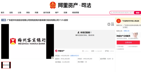 而且,因涉合同纠纷诉讼,*ST超华持有梅州客商银行17.6%的全部股权,根据执行裁定一度被法院计划于7月25日挂网拍卖。这笔股权的评估价为4.65亿元,起拍价为4.18亿元,相当于9折起拍。